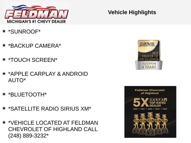 *SUNROOF*, *BACKUP CAMERA*, *TOUCH SCREEN*, *APPLE CARPLAY & ANDROID AUTO*, *Bluetooth®*, *SATELLITE RADIO SIRIUS XM*, *VEHICLE LOCATED AT FELDMAN CHEVROLET OF HIGHLAND CALL (248) 889-3232*, *GENERAL MOTORS AWARD TOP CUSTOMER SERVICE DEALERSHIP IN METRO DETROIT*, Black Cloth.
