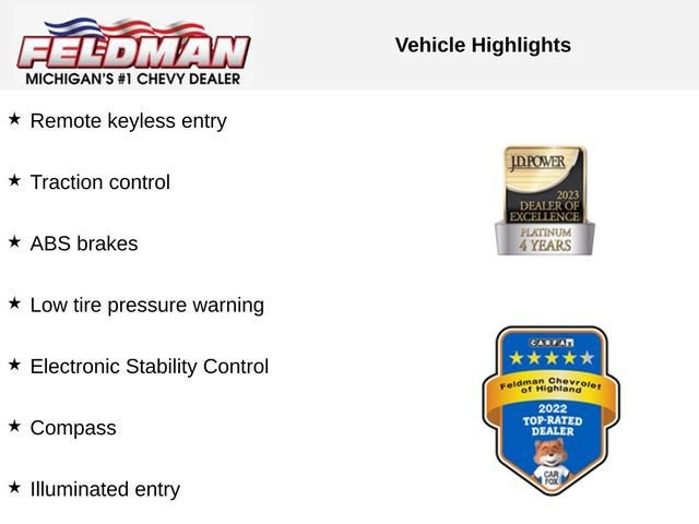ABS brakes, Compass, Electronic Stability Control, Illuminated entry, Low tire pressure warning, Remote keyless entry, Traction control.