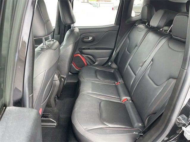 Clean CARFAX.1 Yr Trial (Registration Required), 40/20/40 Rear Seat w/Trunk Pass-Thru, 5-Year SiriusXM Traffic Service, 5-Year SiriusXM Travel Link Service, 6.5 Navigation Group w/Uconnect, 6.5 Touchscreen Display, Air Conditioning ATC w/Dual Zone Control, Auto-Dimming Rear-View Mirror, For Details Visit DriveUconnect.com, GPS Navigation, HD Radio, Heated Front Seats, Heated Steering Wheel, Luxury Leather Trimmed Bucket Seats, Passive Entry Remote Start Package, Passive Entry/Keyless Go, Power 4-Way Driver Lumbar Adjust, Power 8-Way Driver Manual 4-Way Passenger Seats, Premium Trailhawk Package, Quick Order Package 27E, Radio: Uconnect 6.5 Nav, Remote USB Port, SiriusXM Traffic, SiriusXM Travel Link, Uconnect Access, Windshield Wiper De-Icer.Black 2017 Jeep Renegade Trailhawk 4WD 9-Speed 948TE Automatic 2.4L I4 MultiAir 21/29 City/Highway MPGOdometer is 6422 miles below market average! 21/29 City/Highway MPG