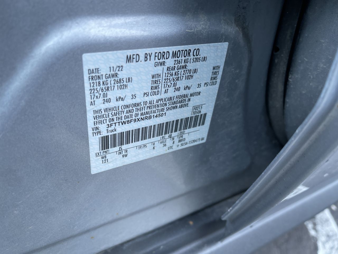 3FTTW8F9XNRB14501