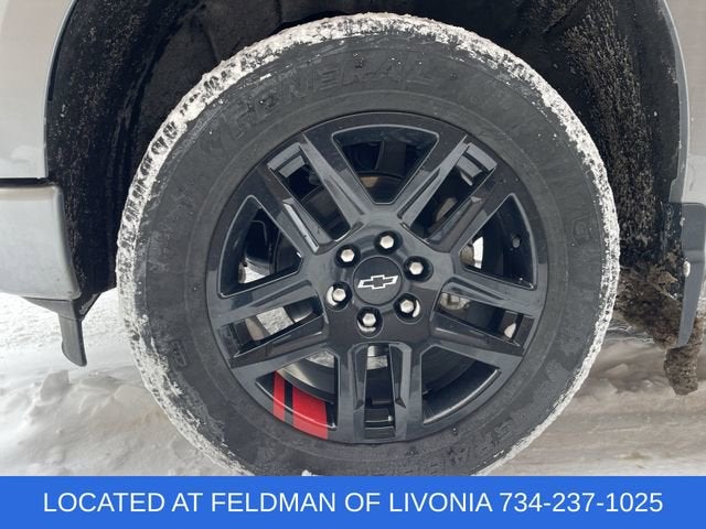 The Redline Edition package adds a striking visual flair to this Silverado, with its high-gloss black exterior accents, including the grille, door handles, and tailgate lettering. The 20-inch high-gloss black wheels with red stripes complete the bold, sporty look.
