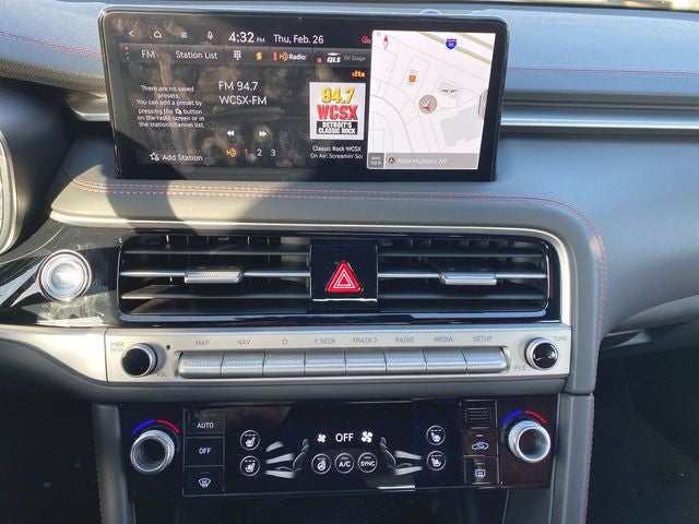 - Radio: AM/FM/SiriusXM/HD Audio System -inc: 6 speakers, 5th generation navigation system w/10.25" touchscreen, dynamic voice recognition, connected routing, over the air updates, Android Auto and Apple CarPlay, SiriusXM Radio w/90-day trial subscription (not available in Alaska or Hawaii), Genesis connected services, Bluetooth® hands-free phone and audio streaming system and 3 USB ports