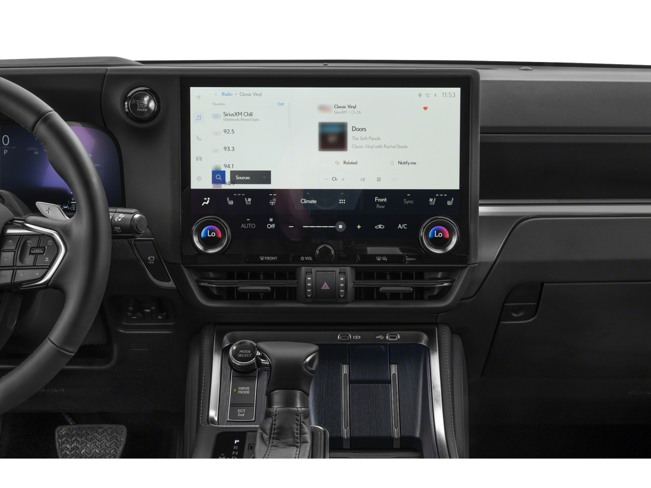 • Radio: Lexus Interface w/14" Touchscreen -inc: 10 speakers, wireless Apple CarPlay integration, Android Auto compatibility, Safety Connect (up to 10 year trial), Service Connect (up to 10 year trial), Remote Connect (3 year trial), Wi-Fi Connect (up to 30 day/3 GB trial) and Drive Connect w/Cloud Navigation, Intelligent Assistant and Destination Assist (3 year trial)