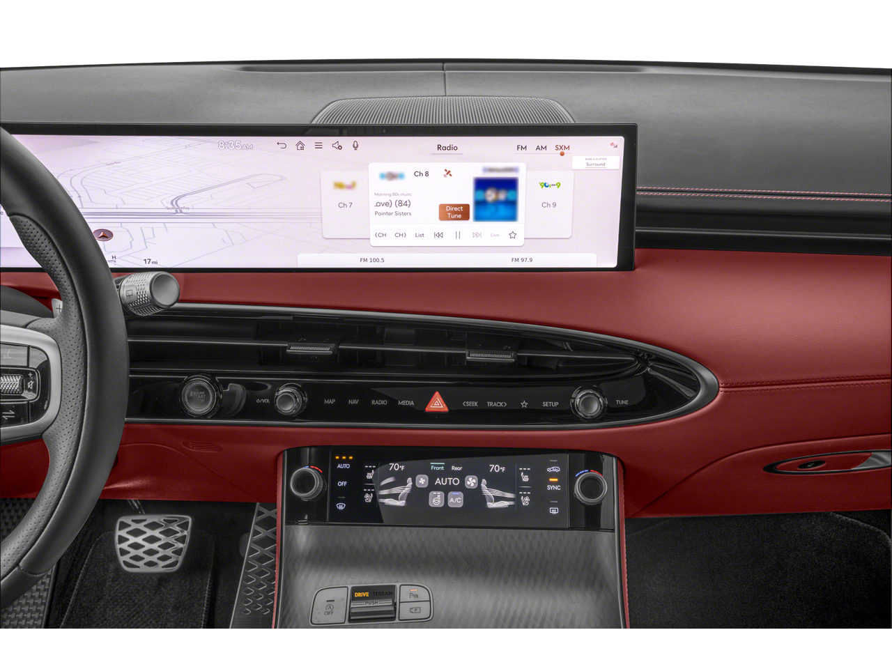 - Radio: 14.5" Navigation System w/AM/FM/HD Radio -inc: SiriusXM radio w/90-day trial subscription (N/A in AK or HI), wireless Android Auto and Apple CarPlay, Genesis Connected Services, Bluetooth® hands-free phone & audio streaming system, Bang & Olufsen sound system w/16 speakers, WiFi hotspot, internal amplifier and USB port